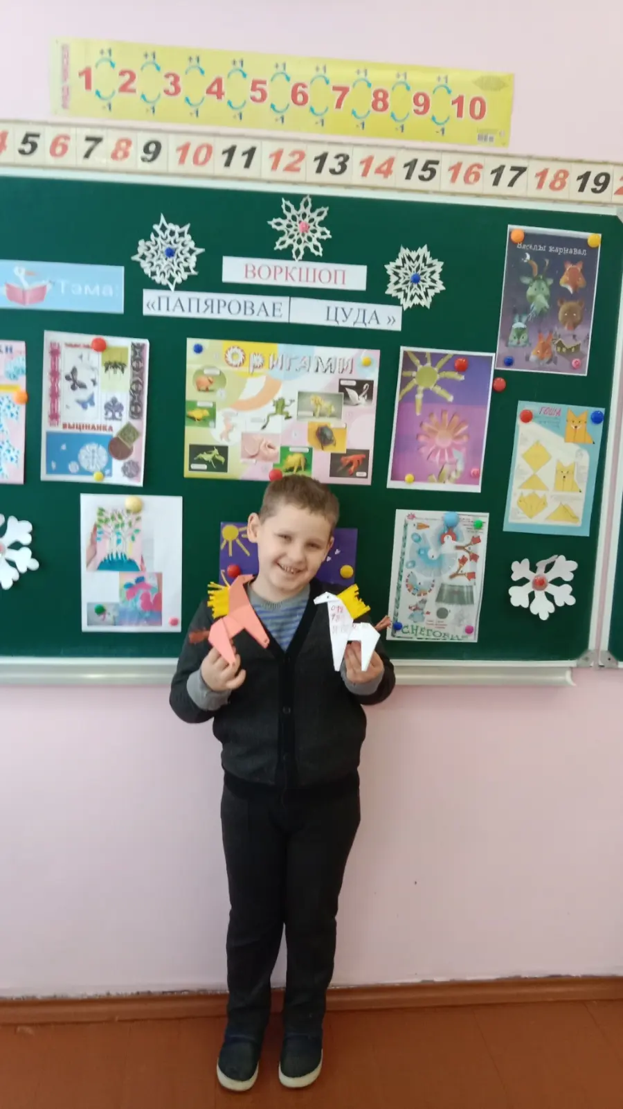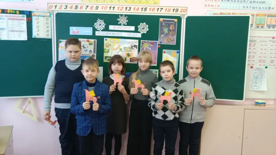 В рубрике "Бумажные волшебники" ребята из начальной школы повторили виды бумаги.Игра "Бумажный перевёртыш"-выполняли различные задания с бумагой:вырезали снежинки,скручивали полоски,наклеивали аппликации. Используя вид оригами ребята показали мастер -класс по выполнению поделки "Лошадка-символ года".